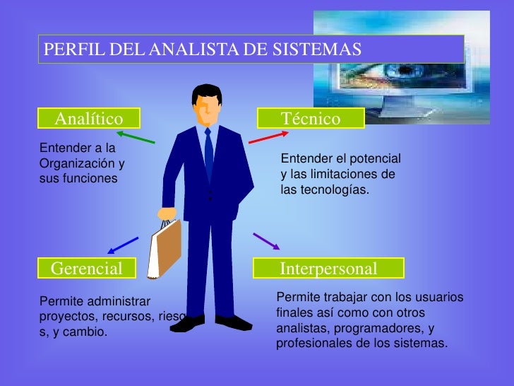 Un analista de Organización y Sistemas debe Planificar y desarrollar proyectos de sistematización administrativa, coordinando y dirigiendo los movimientos relacionados, con el fin de optimizar el ejercicio de los sistemas y servicios de la información administrativa. Entre sus funciones están: